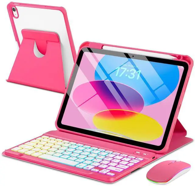 Case with Keyboard Mouse for iPad A16 11th 10th Generation 11/10.9 inch,Rainbow Backlit Detachable Keypad Rotatable Magnetic Cover Pencil Holder for iPad 11 2025 10 Gen 2022 Watermelon Red