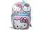 Girls Hello Kitty 16" Backpack with Rectangular Detachable Insulated Lunch Bag set. Featuring a graphic print of Hello Kitty. Includes one main zippered compartment and padded, adjustable shoulder straps, along with a carry handle. There are mesh pockets on the sides to hold a water bottle and other items. The insulated, detachable lunch bag is round and features a print of Hello Kitty, attaching with two hook-and-loop straps. The backpack measures approximately 16"H x 12"W x 5"D. The lunch bag measures approximately 9.5" x 3" x 8". Suitable for children ages 3 and up.