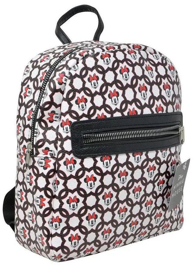Disney Minnie Mouse 10-Inch Allover Print Mini Backpack. Perfect for Kids, Women, and Teens. Faux Leather Mini Backpack for Children. This officially licensed Disney backpack is made from high-quality materials for long-lasting durability, perfect for daily use and travel. This cute backpack features a colorful all-over print of Minnie Mouse with a small front pocket, a favorite among Disney fans.