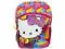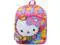 This Hello Kitty backpack features a Hello Kitty face in pink print. The backpack has padded adjustable straps, is made of durable polyester material, has a large front pocket for additional storage, and two side mesh pockets for a water bottle or smaller items. Pink and Neon graphic with the phrase "Good Things Ahead". Measurements are 12" x 5" x 16". Made to last the entire school year and intended for kids ages 3+.