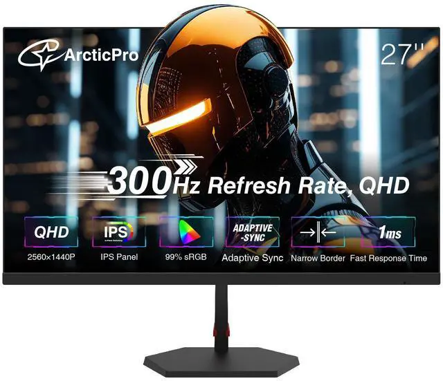 ArcticPro 27 inch Gaming Monitor 300Hz, QHD 2K, IPS Panel, 0.5 ms Response Time, Adaptive sync, PC Computer Monitor, 3-Sided Frameless, Ultra Slim, 132% sRGB, with DP Cable up to 300Hz, DP*2, HDMI*2