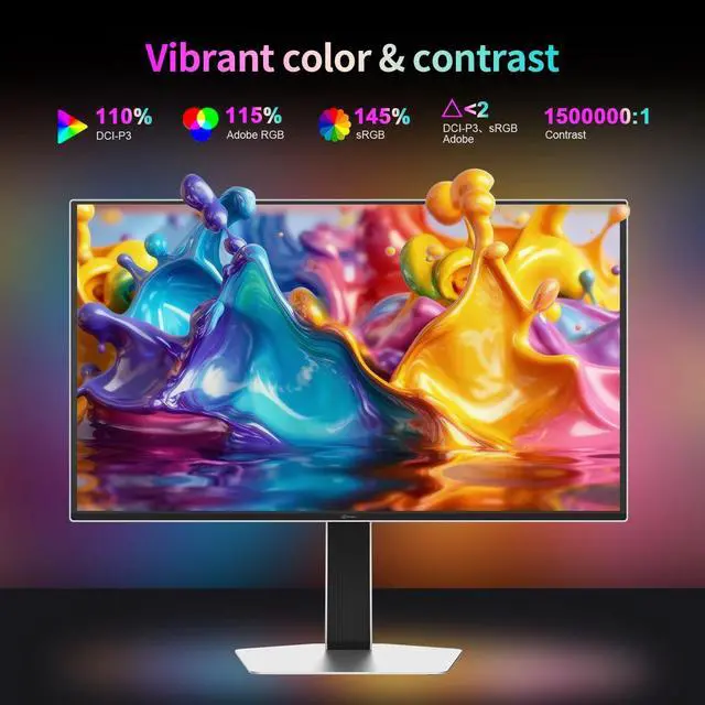 [QD-OLED Display] Featuring a QD-OLED display with over ten million self-emissive pixels, it delivers vibrant colors and outstanding performance in low light conditions. ^^ [Fast Response Time] With a native gray-level response time of just 0.03 ms, it delivers exceptional clarity and fluidity in high definition. ^^ [240Hz Refresh Rate] QHD resolution combined with a 240Hz refresh rate ensures a smooth and immersive gaming experience. ^^ [High Contrast Ratio] With a remarkable static contrast ratio of 1, 500, 000:1, the monitor delivers rich image details and exceptional black level performance. ^^ [Adjustable in 4 Directions ] Includes an ergonomic stand with a user-friendly quick-release design that can be adjusted in 4 directions: up and down elevation, left and right rotation, front and back tilt, and vertical rotation, ensuring a comfortable entertainment experience. ^^ [Enjoy Vibrant Colors] Features cinema-grade 110% DCI-P3 color gamut coverage and color accuracy of less than 2 E, delivering precise and vibrant colors. ^^ [Eye Care Model] Adopts low blue light technology to minimize harmful blue light exposure and protect your eyes, without altering color accuracy. This gaming monitor has two built-in speakers.