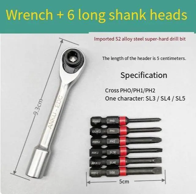 Compatible hexagonal head with opposite sides measuring6.35 millimeters and single-headadapter head