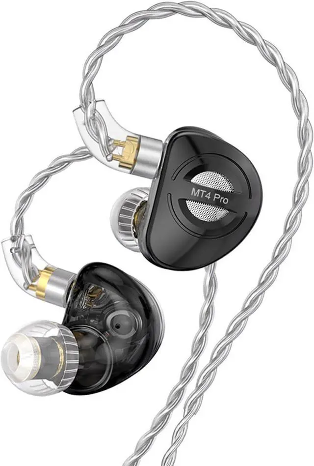 TRN MT4 Pro in Ear Monitor,Dual Dynamic HiFi Earphones,10mm DLC IEM,6mm Titanium-Plated Diaphragm Dynamic Unit Headphones,Liquid Metal + Resin Shell Design,iems for Gaming no mic Black