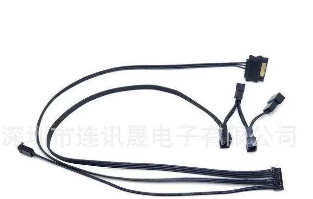 PH2.0 9P to SATA 15P male connector+5240 PWM case fan powercable. PH2.0 9P case powersupply+SATA 15P male connectorpowersupply. Can be connected to multiple case fans.