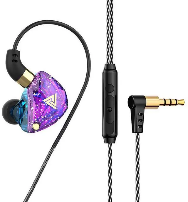 QKZ SK8 Subwoofer Headphones -Gamingheadphones for computers -With remotecontrol and microphone - Sportive in-ear style headphones for first-person shooter games purple