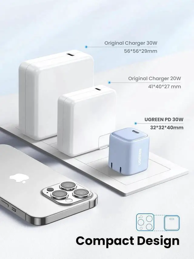 UGREEN 30W USB C Charger for iPhone 17, Nexode Foldable GaN PPS Compact Fast Wall Charger Block, USB-C Power Adapter for iPhone 17/16/15/14, Galaxy S25/S24/S23/S22 Blue