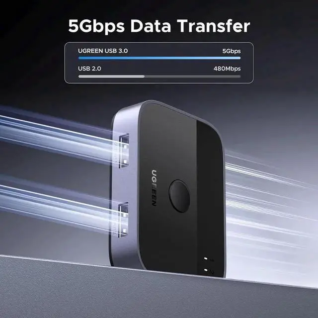 Transfer Files in Seconds: The USB 3.0 switcher supports data transfer up to 5Gbps with and is backward compatible with USB 2.0; Easily transfer files from PC1 to PC2 and no more trouble with slow transmission speeds.