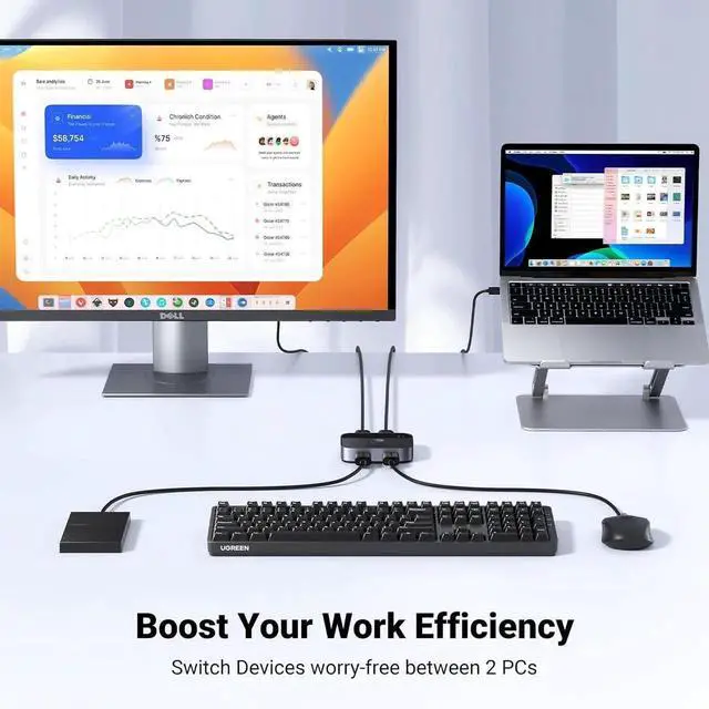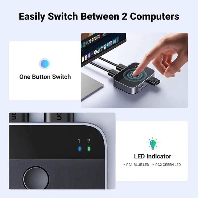 2 PCs Share Multiple Devices: UGREEN 2 in 2 out USB switch supports 2 computers sharing 2 USB devices like keyboards, mouses, printers, webcam and more. Switch freely between your work computer and personal laptop, boost your work efficiency.