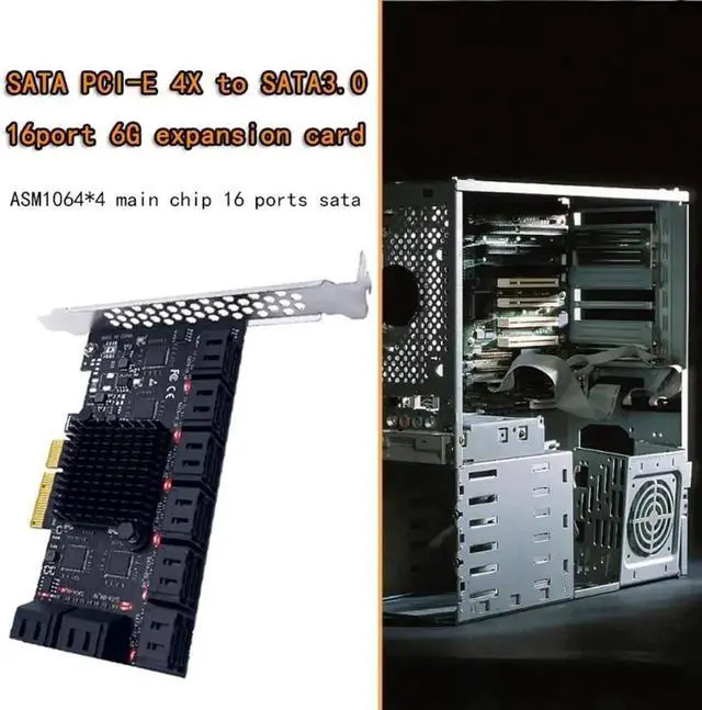 • PCIE SATA Card PCIe to 16 Ports SATA 3.0 6G SSD Adapter Card Computer Accessories Support 16 SATA 3.0 Devices