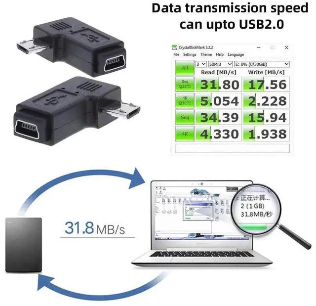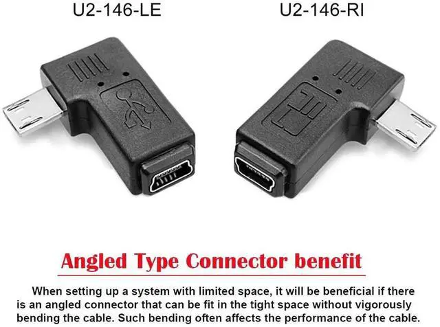 The angled type Allowing you to connect it to a female port, even if space around the port is limited.