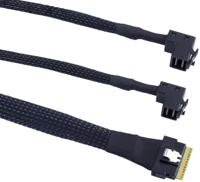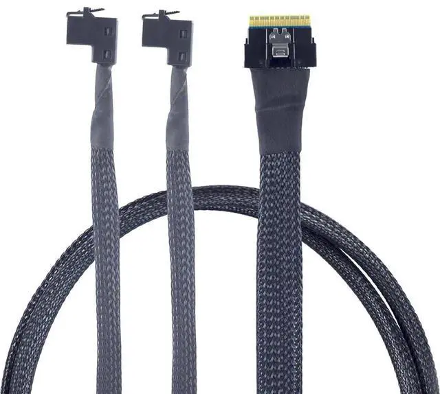 Upward SFF-8643 Connectors Convenient right-angle design for optimized cable routing in tight rackmount servers.