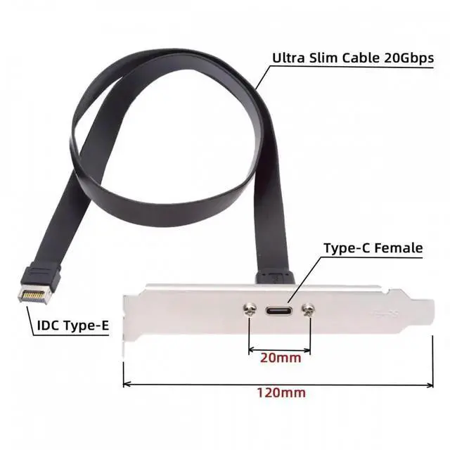 USB 3.2 Type-E IDC 20Pin Front Panel Header to USB-C Type-C Female Extension Cable 20Gbps with Panel Mount Screw