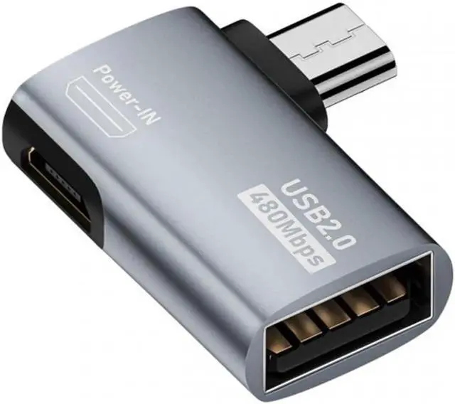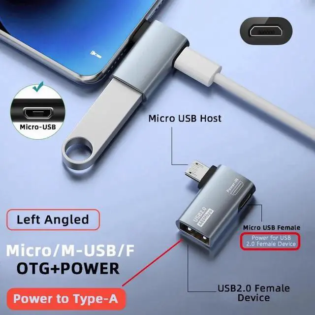 Micro USB 2.0 to Type-A Female OTG Host Adapter 90 Degree Angled with USB Power for Phone Tablet