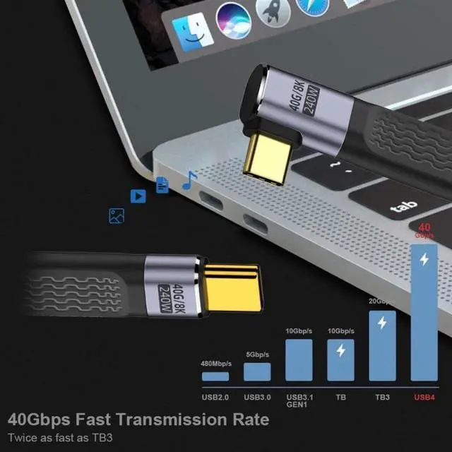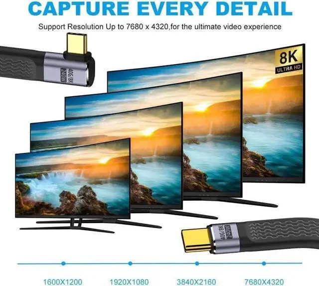 • Right Angled 240W Type-C USB-C Male to Male USB4 40Gbps 100W 8K Flat Slim FPC Data Cable for Laptop Phone 13cm