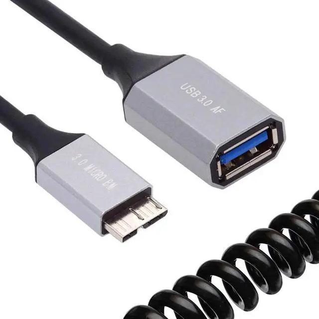 • Micro-USB3.0 Male Host to USB3.0-A Female OTG Stretch Coiled Cable 100cm Extension 5Gbps for Disk Phone Camera Data