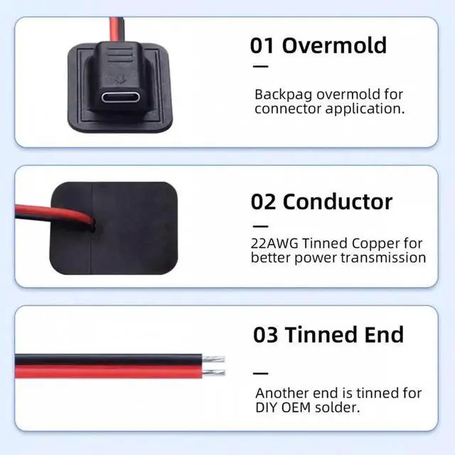 for DIY OEM use. Type-C Micro-USB DC 5.5x2.1mm DC 3.5*1.35mm; You need to solder the cable yourself.