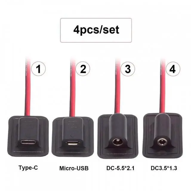 4pcs/lot Type-C Micro-USB DC 5.5x2.1mm 3.5X1.35mm Power Extension Cable for Backpack Charging Electric Heating Pads