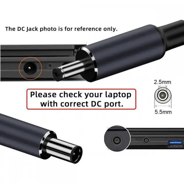 • Use it with the 100W/65W Type-C Charger to charge your Laptop with DC 5.5mm port.