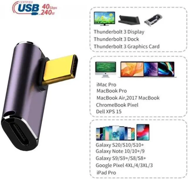 USB4 Type C Male to Female 240W Power 40Gbps Data 8K Video Adapter Low Profile Left Right Angled for NS Phone Laptop