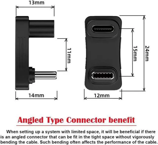 2. The angled type Allowing you to connect it to a female port, even if space around the port is limited.