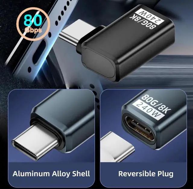 USB5.0 80Gbps Male to Female Extension Adapter with 240W 16K 8K 5K Compatible with USB4.0 Thunderbolt3/4/5