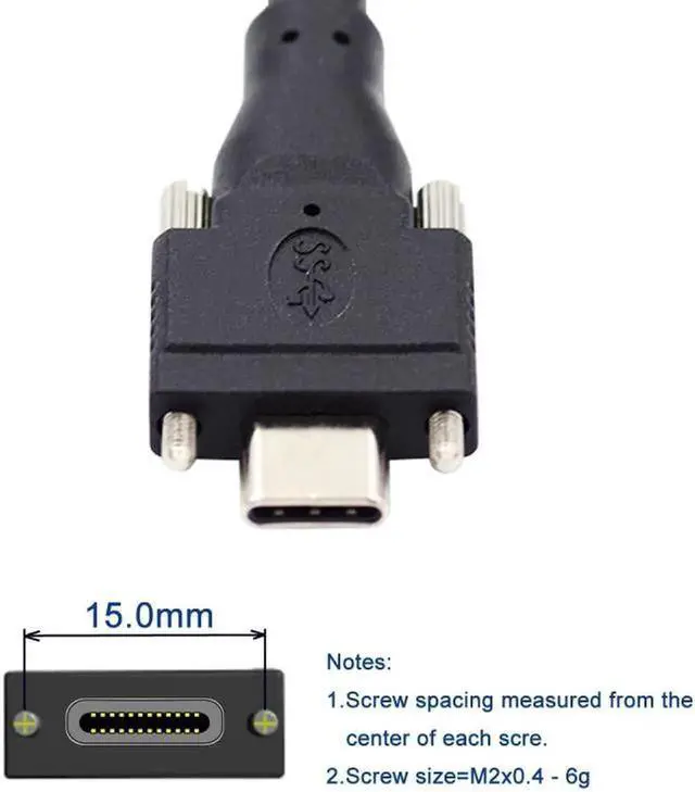 5 Meters USB 3.1 Type-C Dual Locking Connector to Standard USB3.0 Data Cable for Camera With Panel Mount Screw