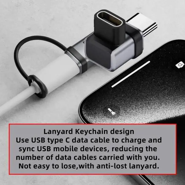 90 Degree USB5.0 80Gbps Male to Female Low Profile Down Up Angled Extension Adapter with Lanyard Keychain 240W 16K 8K 5K Compatible with USB4.0 Thunderbolt3/4/5