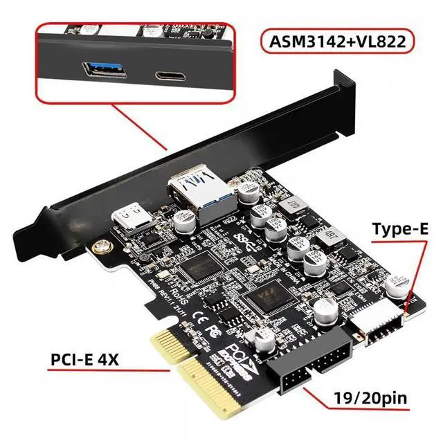 10Gbps Type-E USB 3.1 Front Socket USB3.0 19Pin/20Pin Type-A USB-C to PCI-E Express Card Adapter ASM3142 VL822