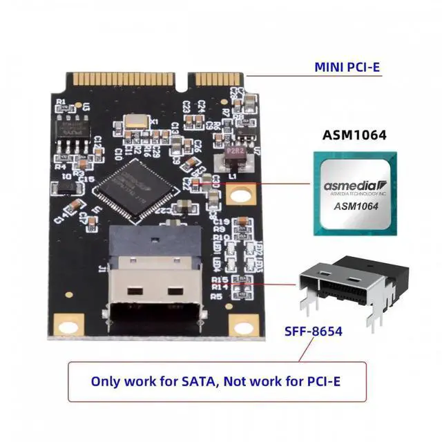 Slimline SFF-8654 can convertfour SATA3.0 interfaces, which can be connected to an SSD solid state hard disk as a system disk, and supports transmission rates of 6.0Gbps, 3.0Gbps, 1.5Gbps.The slimline to 4 SATA not include.