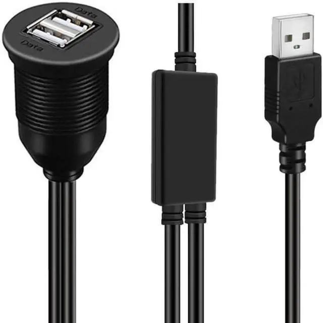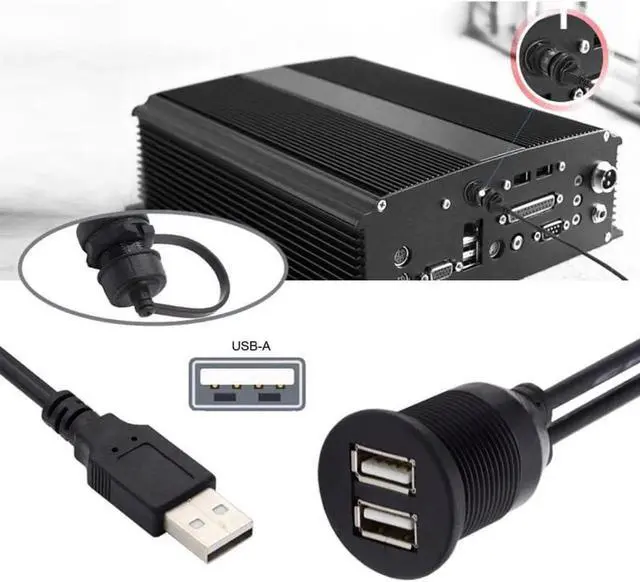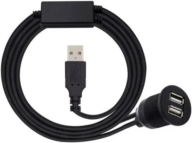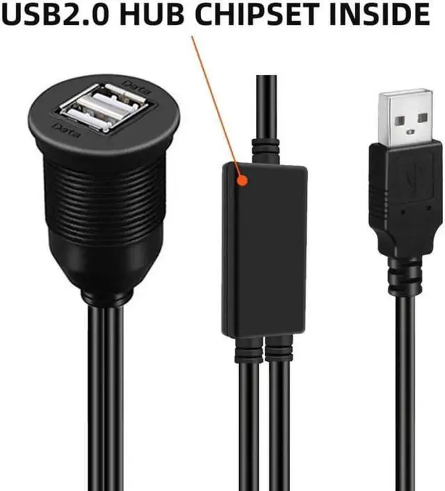 • 1m Waterproof Dustproof 480Mbps USB2.0 Type-A Male to Dual Female Hub Extension Data Power Cable Car Panel Mount Design