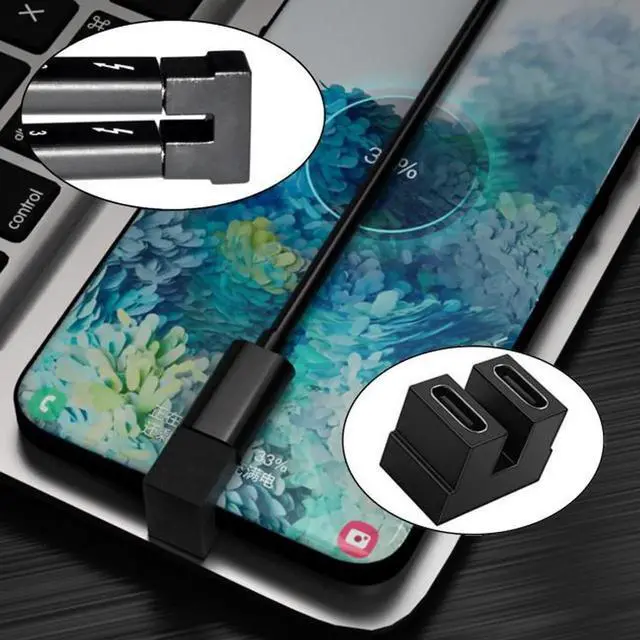 UC-009-FF 40Gbps USB4 Type C Female to Female Coupler Extender Power Data Video Adapter Opposite U Shape Back Angled for NS SwitchPhoneLaptop