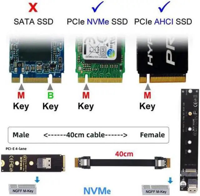 1. NGFF M-Key NVME Male to Female Extension Cable 40cm with SFF-8654 Connector for Mainboard SSD