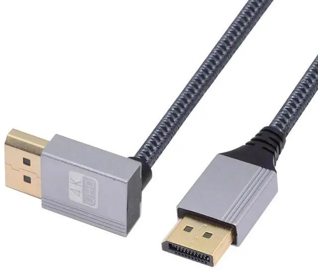 Up Angled DisplayPort DP to DP Cable 4K 60hz Cable Silver Sleeve Ultra-HD UHD 90 Degree for Desktop Laptop Monitor Graphics Card