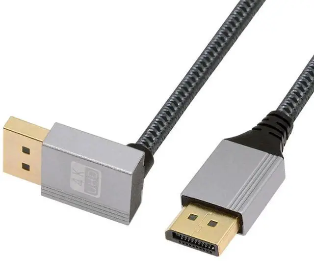 Down Angled DisplayPort DP to DP Cable 4K 60hz Cable Silver Sleeve Ultra-HD UHD 90 Degree for Desktop Laptop Monitor Graphics Card