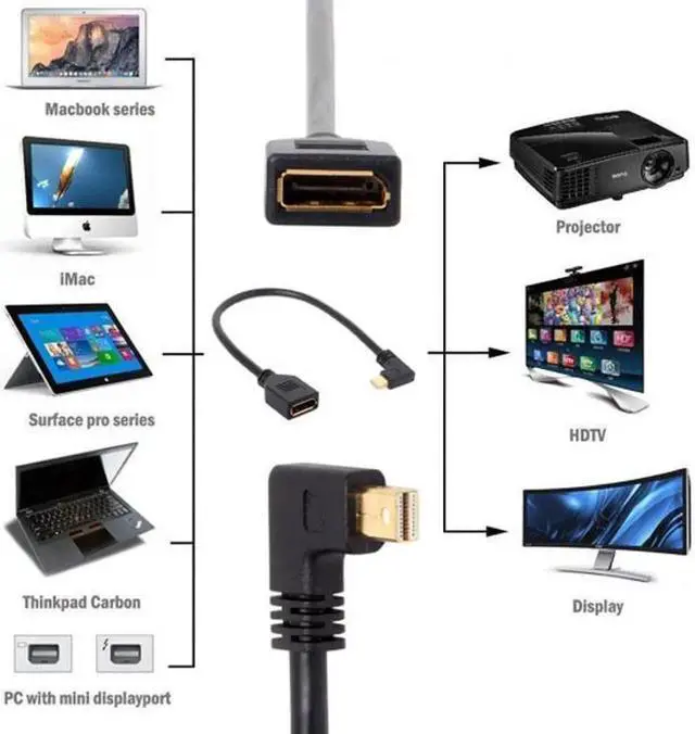 • Mini DP DisplayPort 90 Degree to DisplayPort Female Cable for Displays Monitors