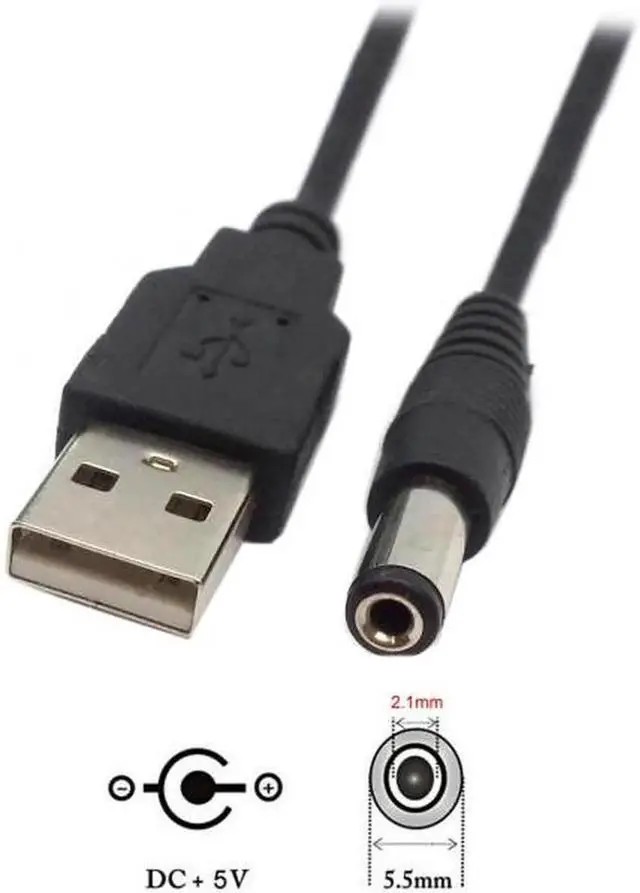 USB 2.0 A Type Male TO 5.5x2.1mm DC Power Plug Barrel Connector 5v Cable 100cm