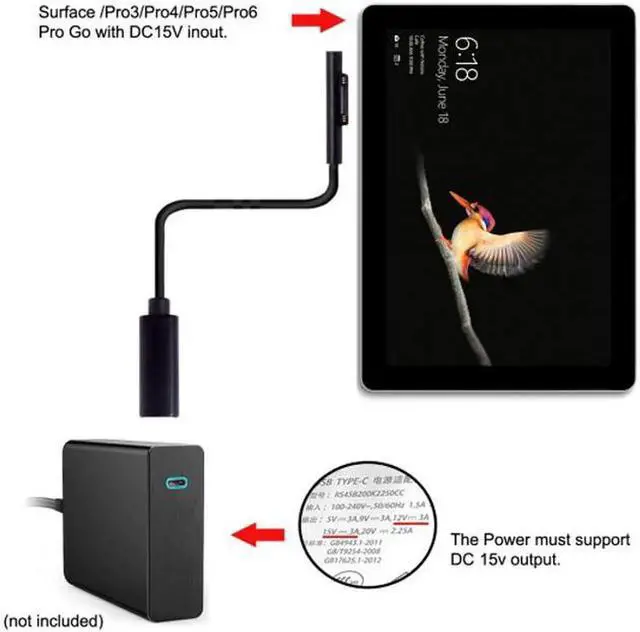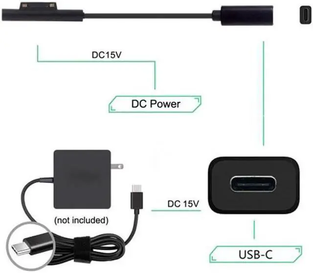 DC 15V Type-C USB-C Female to Surface Pro3 Pro4 Pro5 Pro6 Book Pro Charge Cable