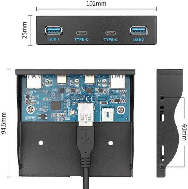 • USB-C USB 3.0 HUB 4 Ports Front Panel to Motherboard 20Pin Connector Cable for 3.5" Floppy Bay