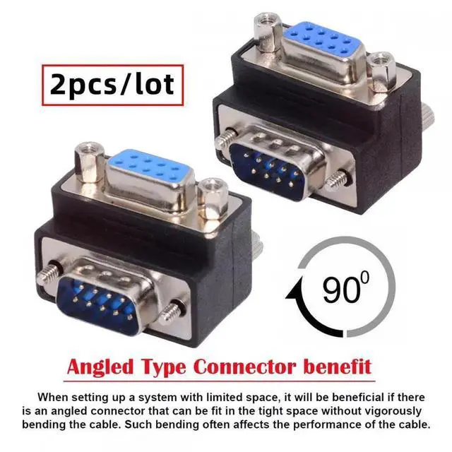 2pcs/lot Up & Down Angled 90 Degree RS232 D-Sub 9Pin Screw Type Male to Female Nut Type Extension Adapter