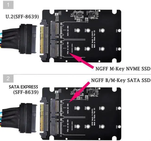 Connector: U.2 SFF-8639 male Dual 67 pin M.2 NGFF slot