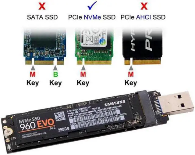 • Not work for B-key or B/M-key SATA SSD.