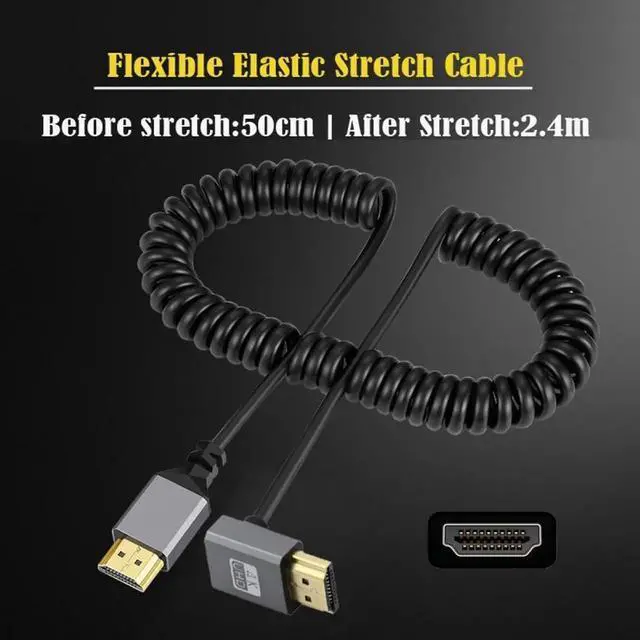 HDMI 2.0 Male to HDMI Male 4K 60hz Stretch Coiled Cable Up Angled 90 Degree for HDTV Computer Laptop Monitor