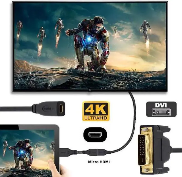 DVI 24+1 Male to Micro HDMI 1.4 Type-D 4K Female Extension Cable for Computer HDTV Graphics Card UHD