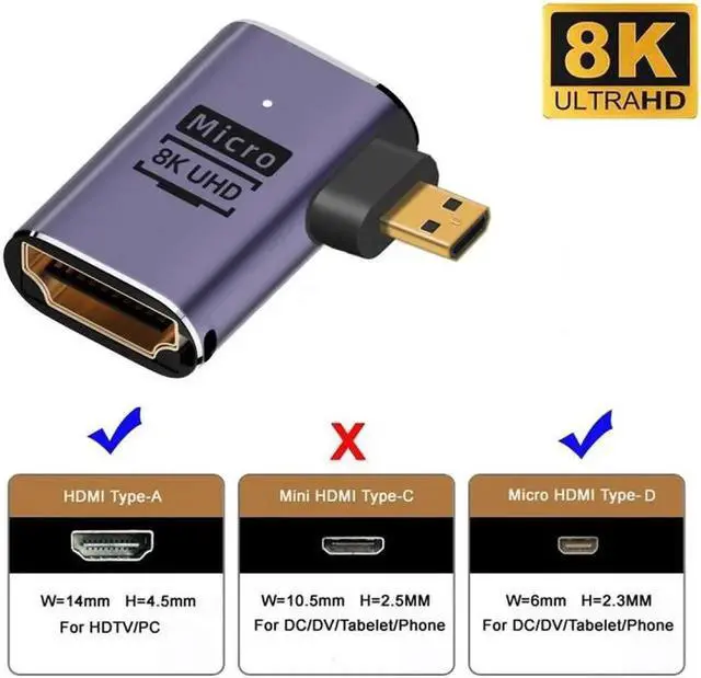 Micro HDMI Male to HDMI 2.1 Female UHD Extension Gold Converter Adapter Support 8K 60hz HDTV