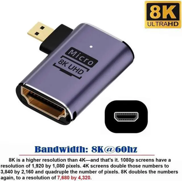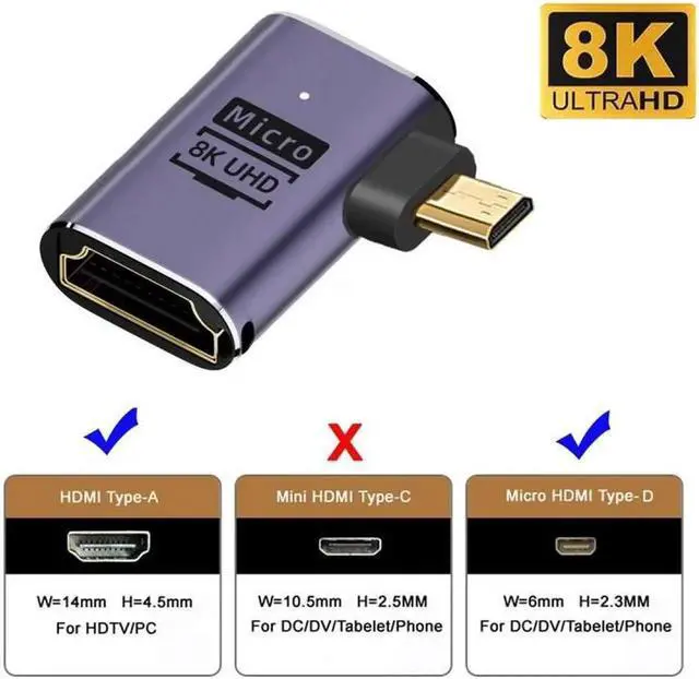 Micro HDMI Male to HDMI 2.1 Female UHD Extension Gold Converter Adapter Support 8K 60hz HDTV