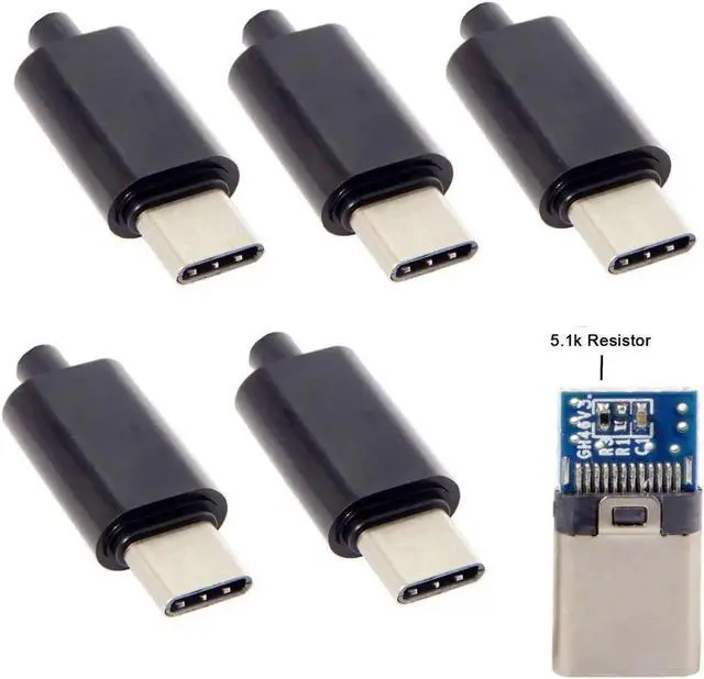 DIY 24pin USB Type C USB-C Male OTG Host Type 5.1k Resistor with Black Housing Cover UC-210-BK