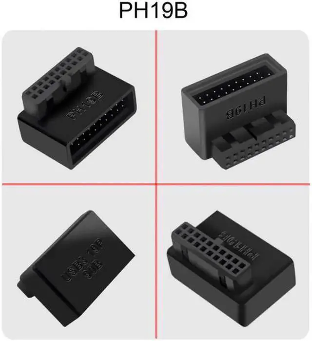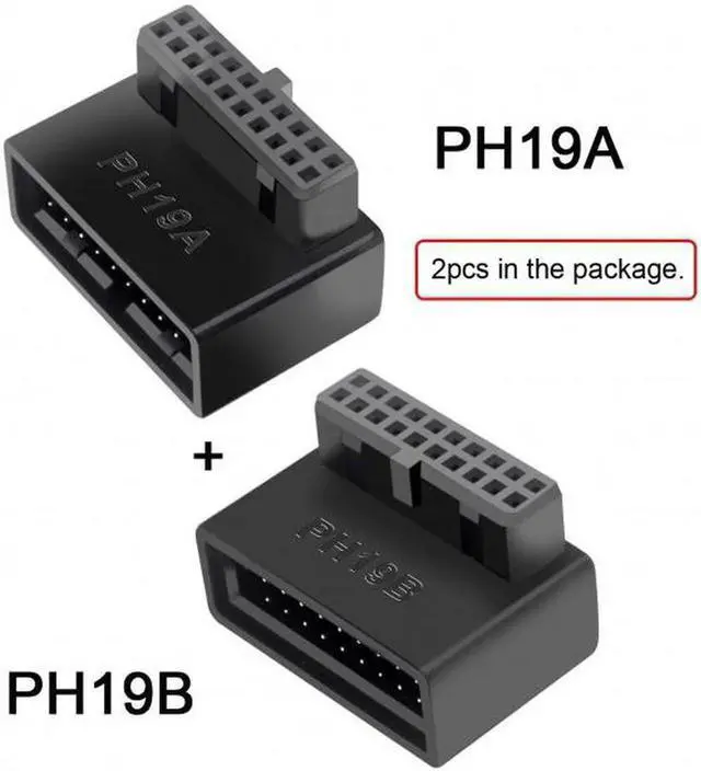 USB 3.0 20pin Male to Female Extension Adapter Up & Down Angled 90 Degree Overmold