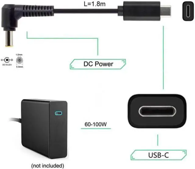 Type C USB-C Input to 5.0 * 1.0 mm Cable fit for Laptop