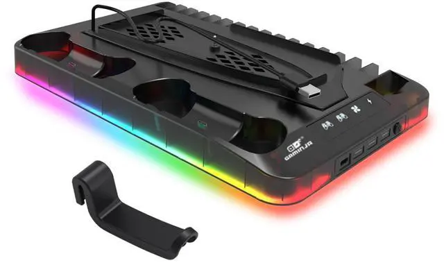 PS5/slim/pro cooling stand with RGB lights, PS5 controller charging stand,storage for game discs, headphones black